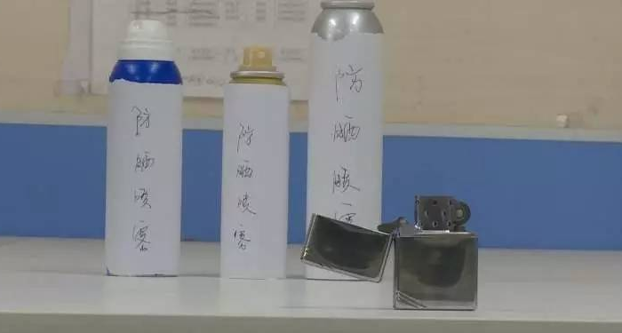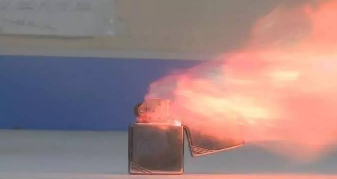 記者選了幾種防曬噴霧,點燃打火機,朝明火上噴,看看會發(fā)生什么?