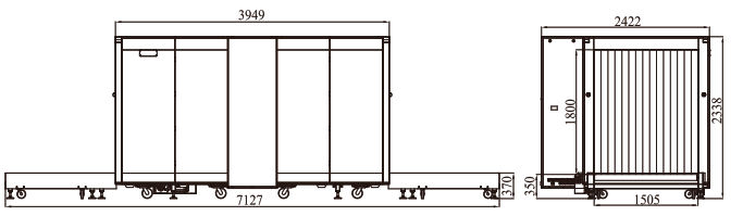 外形尺寸(不含接物架)7127mm(長)*2422mm(寬)* 2338mm(高)